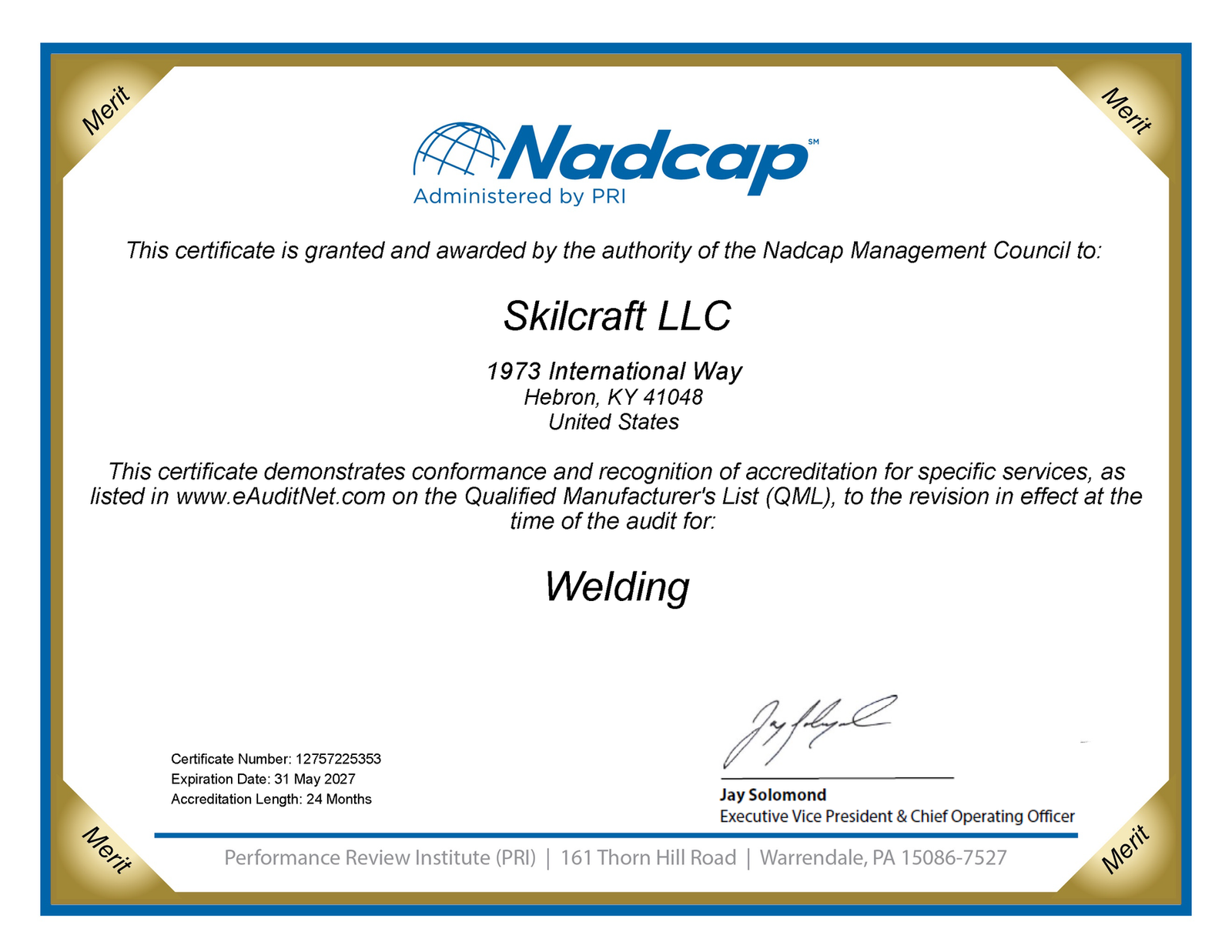 - Nadcap-certified, GTAW meeting the requirements of AWS D17.1 D17-certified precision welding services handle a wide